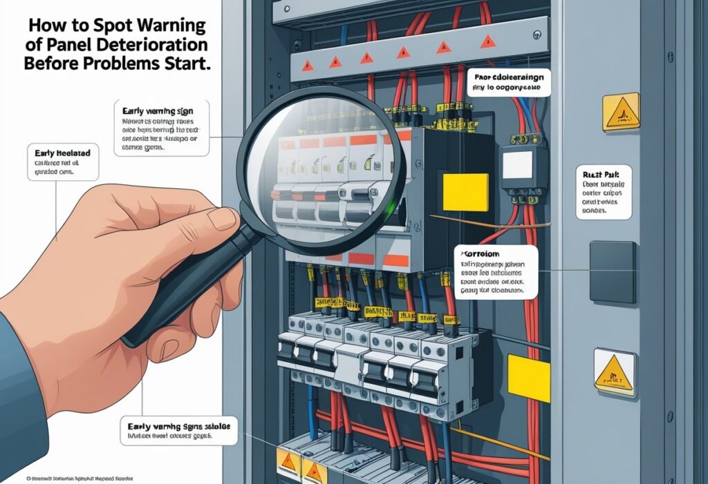 Your electrical panel wears its health on its sleeve, honestly. Visible changes are often the earliest clues. If you spot structural damage, corrosion, or odd color changes, something’s up.